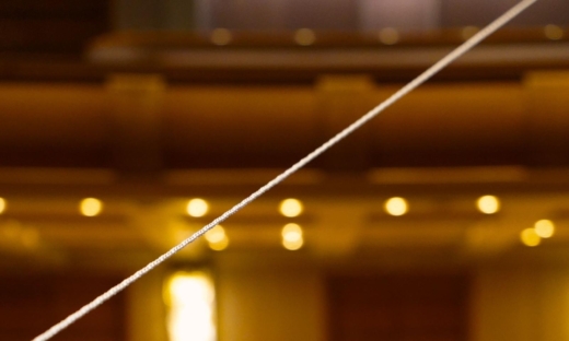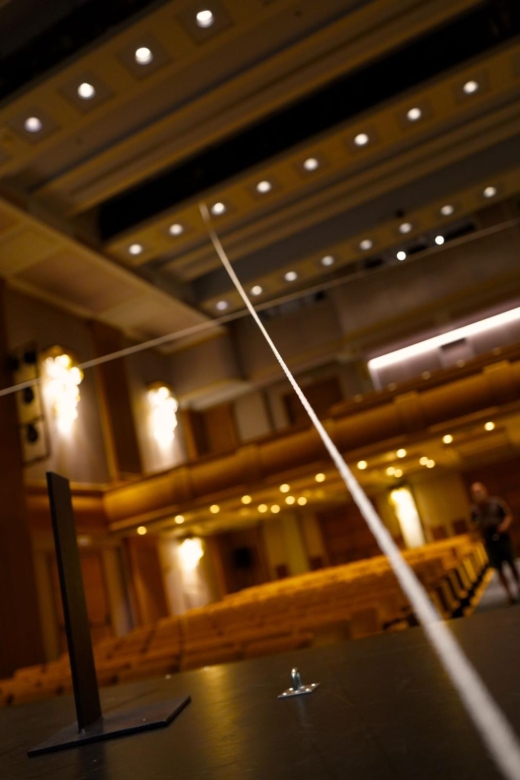 A meditation on transcendence through speed, Monaco Mobile’s synesthetic installation is composed of vibrating ropes, lights, motors and surround sound projection: a kinetic design set into motion by theatrical machinery. Instigated by Giacomo Balla’s stage sets for Sergei Diaghilev’s 1917 production of Stravinsky’s Feu d’Artifice, as well as Balla’s 1918 painting “Trasformazione Forme-Spiriti”, Monaco Mobile derives from Balla two key elements: centrifugal shapes evoking dynamism and the idea of a set design which is not mere background, but is itself scenic action.