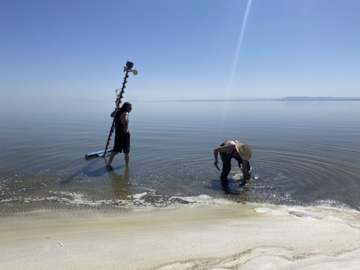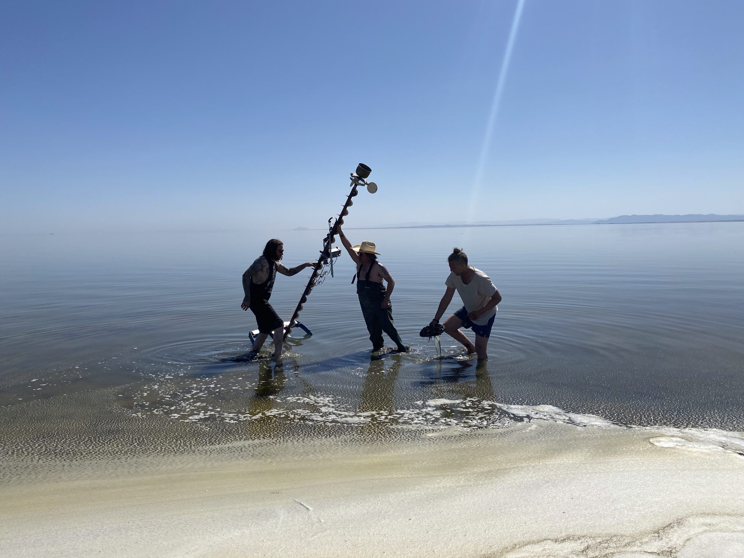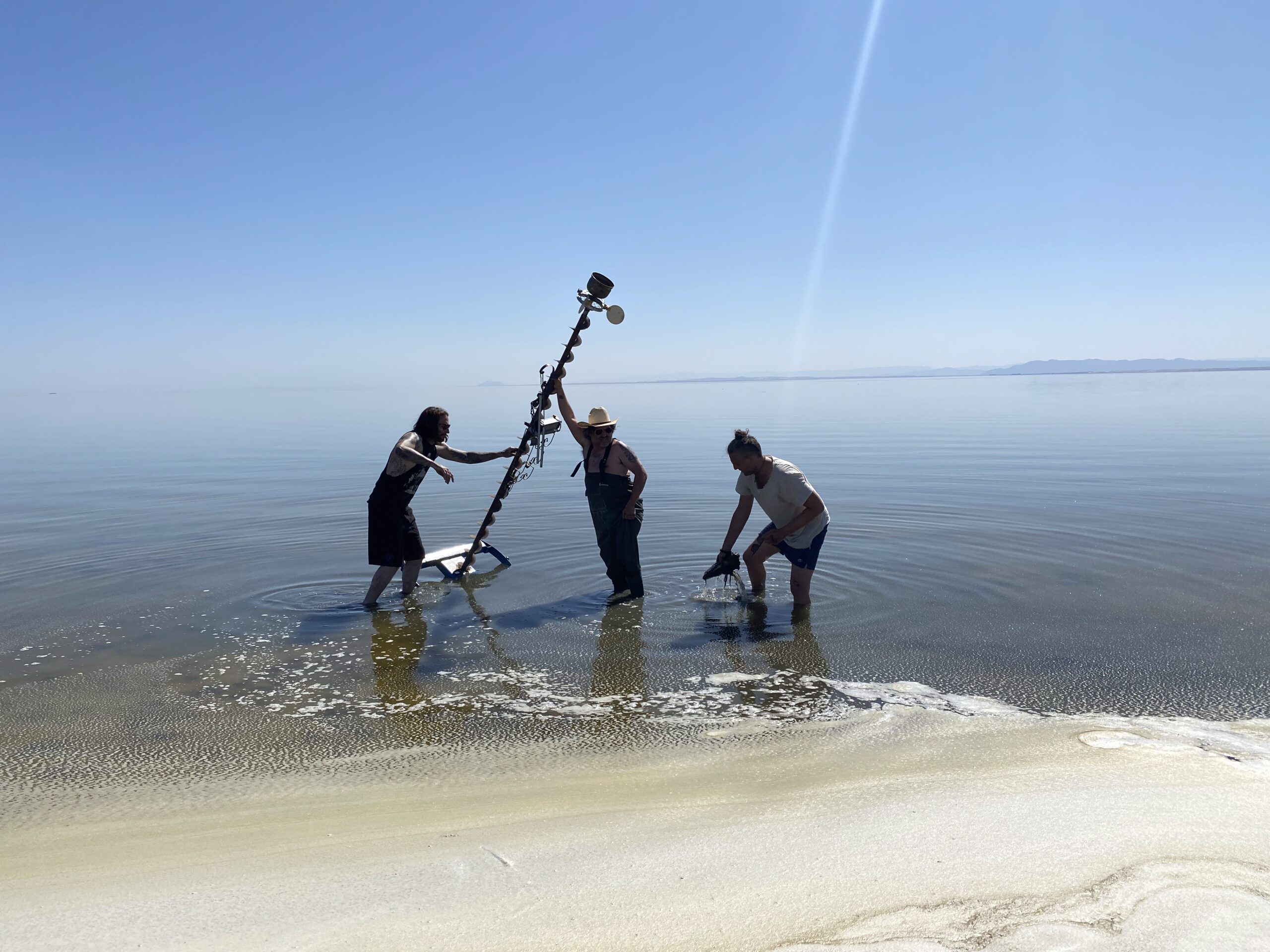 “Salton Sea Echo” is a modern-day requiem: a sculptural/sound installation set to progressively fail. Its main function is to publicly mourn/honor recently departed friends from the Bombay Beach community—the Salton Sea’s progressive shrinking functioning primarily as a backdrop.